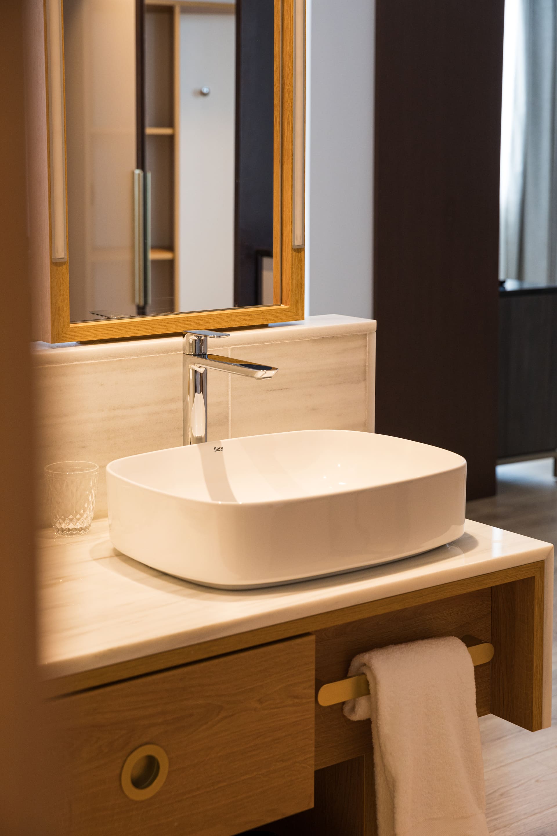 Συμπληρώνοντας αυτές τις τεχνολογίες εξοικονόμησης νερού, το ξενοδοχείο δίνει έμφαση σε υλικά ανθεκτικά, αντοχής και εύκολου καθαρισμού. Επέλεξε τα προηγμένα υλικά Stonex® και Fineceramic® της Roca για τη μακροχρόνια αντοχή τους, καθώς και τις τεχνολογίες Roca Rimless® και Supralit®, που μειώνουν την ανάγκη για χημικά καθαριστικά, βελτιώνοντας την υγιεινή και μειώνοντας τη συντήρηση. Αυτή η προσέγγιση ενισχύει την αποδοτικότητα των λειτουργιών χωρίς να θυσιάζει το πολυτελές και λειτουργικό περιβάλλον που αναμένουν οι επισκέπτες.