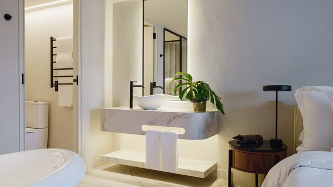 Η ανακαίνιση του Hotel Unique αποτελεί έναν φόρο τιμής στο κοινό όραμα δύο αρχιτεκτονικών θρύλων που ζωντανεύουν μέσα από τον προσεγμένο σχεδιασμό του Armentano και τα καινοτόμα προϊόντα της Roca. Κάθε σουίτα μετατρέπεται σε ένα καταφύγιο φωτός και άνεσης, όπου οι προσεκτικά επιλεγμένες λύσεις μπάνιου της Roca, από τις απαλές καμπύλες των νιπτήρων Ohtake έως τη λιτή αποδοτικότητα των μπαταριών Ona, ενισχύουν τη συνολική ατμόσφαιρα. Η ενσωμάτωση της προηγμένης τεχνολογίας της Roca αντικατοπτρίζει μια σύγχρονη, βιώσιμη προσέγγιση, χωρίς να θυσιάζει την αρχιτεκτονική κληρονομιά του ξενοδοχείου.