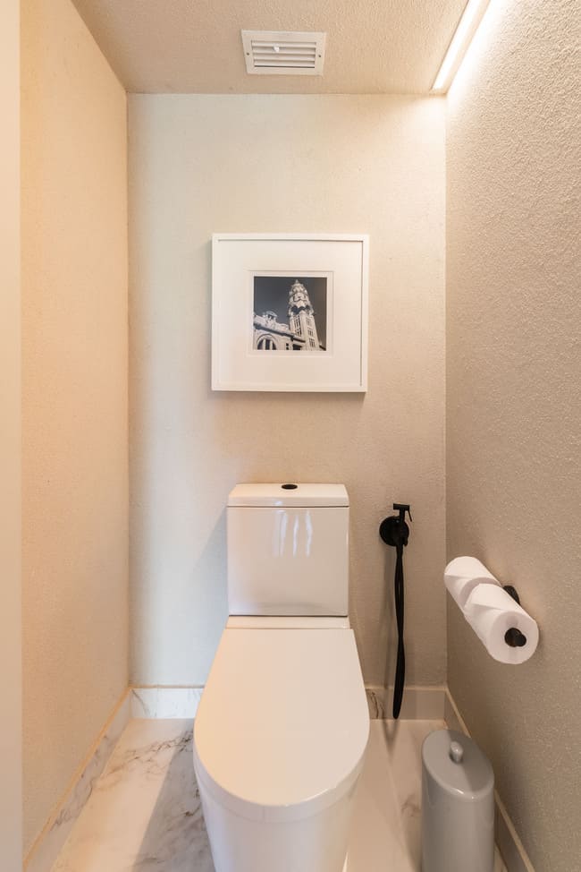 Στο επίκεντρο αυτής της προσέγγισης βρίσκονται τα μπάνια, όπου οι εμβληματικοί νιπτήρες της Roca πρωταγωνιστούν. Η επιλογή των νιπτήρων Ruy Ohtake τιμά το αρχικό όραμα του αρχιτέκτονα, ενώ οι νιπτήρες Horizon του Armentano εισάγουν μια κομψή γεωμετρική αντίθεση, συνδυάζοντας αρχιτεκτονική κληρονομιά και σύγχρονη πολυτέλεια.