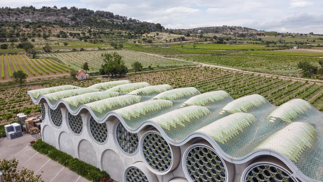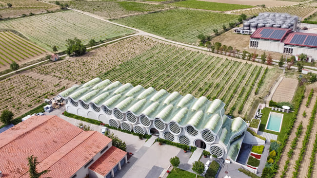 Η βιωσιμότητα και η τεχνολογική καινοτομία βρίσκονται στον πυρήνα της σχεδιαστικής φιλοσοφίας του Mastinell Cava & Hotel. Η συνεχής, κυματιστή στέγη του κτιρίου διαμορφώνει χώρους χωρίς την ανάγκη εσωτερικών τοίχων, δημιουργώντας ένα ρευστό, ανοιχτό περιβάλλον με φυσικό αερισμό. Αυτή η σχεδιαστική προσέγγιση όχι μόνο ενισχύει την οπτική αρμονία, αλλά μειώνει και το περιβαλλοντικό αποτύπωμα. Η βιώσιμη αρχιτεκτονική του ξενοδοχείου περιλαμβάνει συστήματα συλλογής και επαναχρησιμοποίησης βρόχινου νερού, καθώς και λέβητα βιομάζας. Αυτά τα στοιχεία εξασφαλίζουν αποδοτική χρήση ενέργειας και νερού, ενισχύοντας τη δέσμευση του ξενοδοχείου στην περιβαλλοντική υπευθυνότητα.