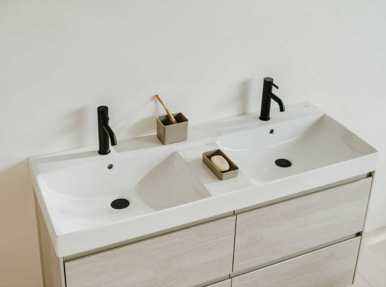 Οι νιπτήρες Ona συνοδεύονται από κομψά έπιπλα μπάνιου με ένα ή δύο συρτάρια που μπορούν να συνδυαστούν με στήλες ή βοηθητικά έπιπλα. Αυτό ισχύει για όλες τις κατηγορίες νιπτήρων, συμμετρικούς, ασύμμετρους, διπλούς ή επικαθήμενους. Με την υπογραφή του καινοτόμου υλικού Fineceramic®, δημιουργούμε ξεχωριστά κομμάτια με λεπτό χείλος που είναι πιο ανθεκτικά και πιο ελαφριά.