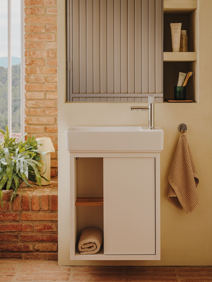 Τα έπιπλα μπάνιου της συλλογής Tura αποτελούν πρότυπο αρχιτεκτονικής σύνθεσης, καθώς ενσωματώνονται άψογα με τους νιπτήρες. Σχεδιασμένη με ευθείες γραμμές και πολύ λιτά σχήματα, η συλλογή διαθέτει τρία διακριτικά και φυσικά φινιρίσματα: off-white, light noble grey και light terracotta.